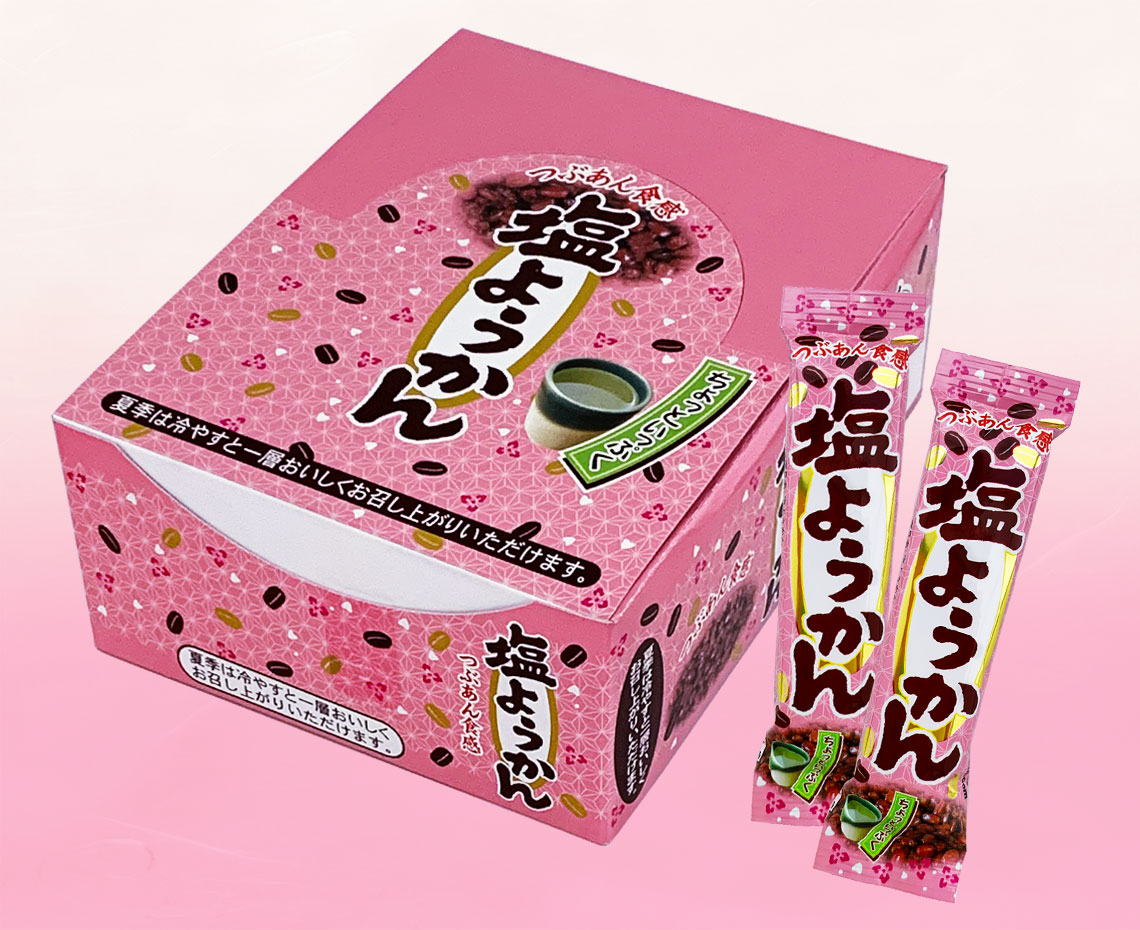 つぶあん食感のひとくち塩ようかんです。夏は冷やすと一層おいしく召し上がれます