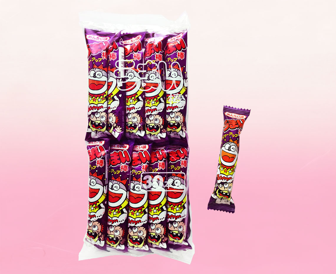 Umaibo 中流行的明太子口味 推薦給喜歡重口味的人 再現辛辣明太子的口味。