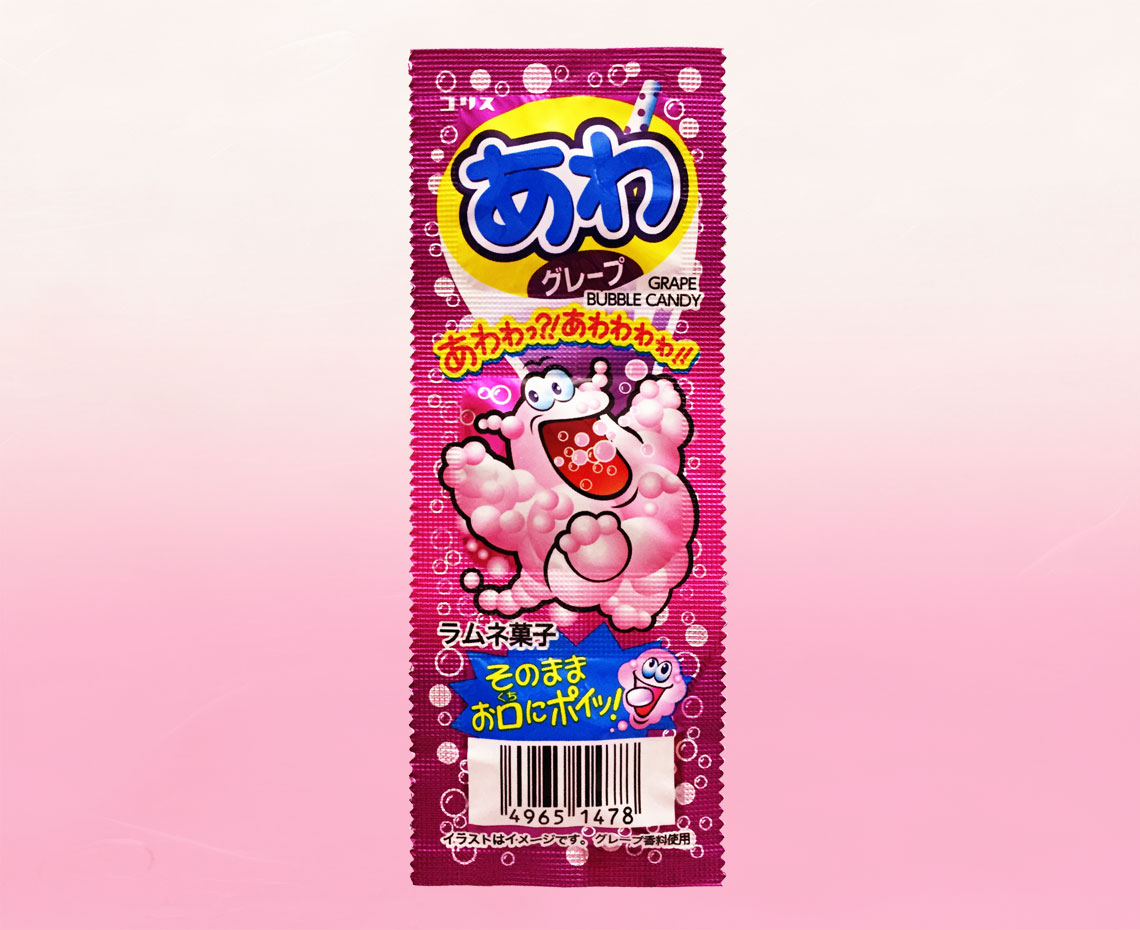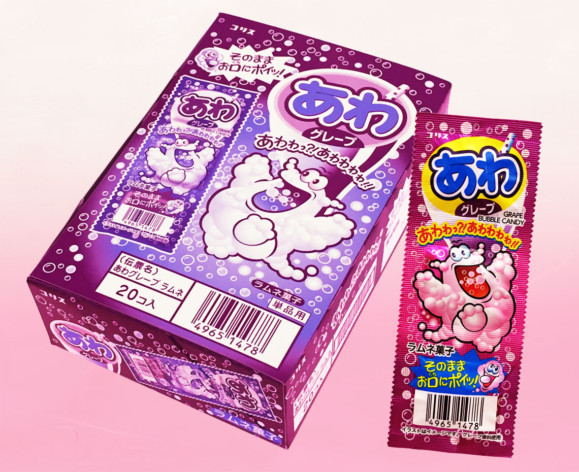 夏季限定 像碳酸飲料一樣享受氣泡刺激 嘴裡充滿氣泡,享受著葡萄口味的彈珠汽水 ※銷售期間:3月~9月