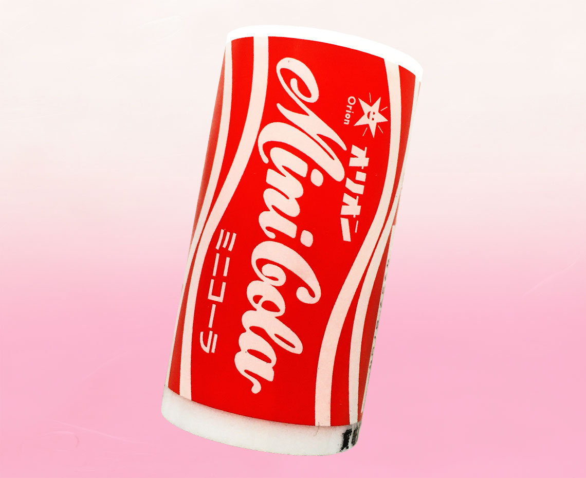 可愛的罐裝飲料造型容器裡,裝著可樂口味的彈珠汽水糖