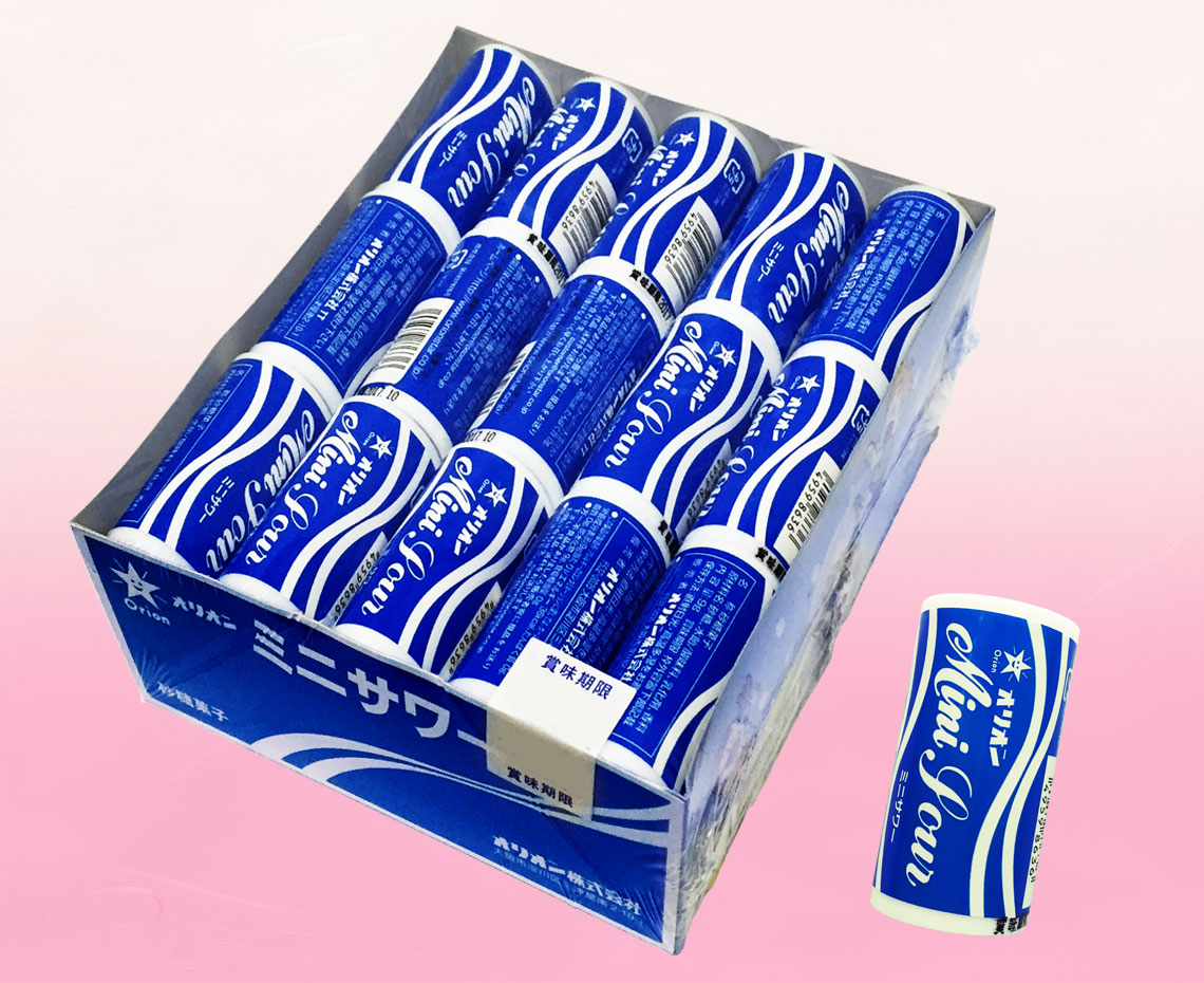 可愛的罐裝飲料造型容器裡,裝著碳酸汽水口味的彈珠汽水糖
